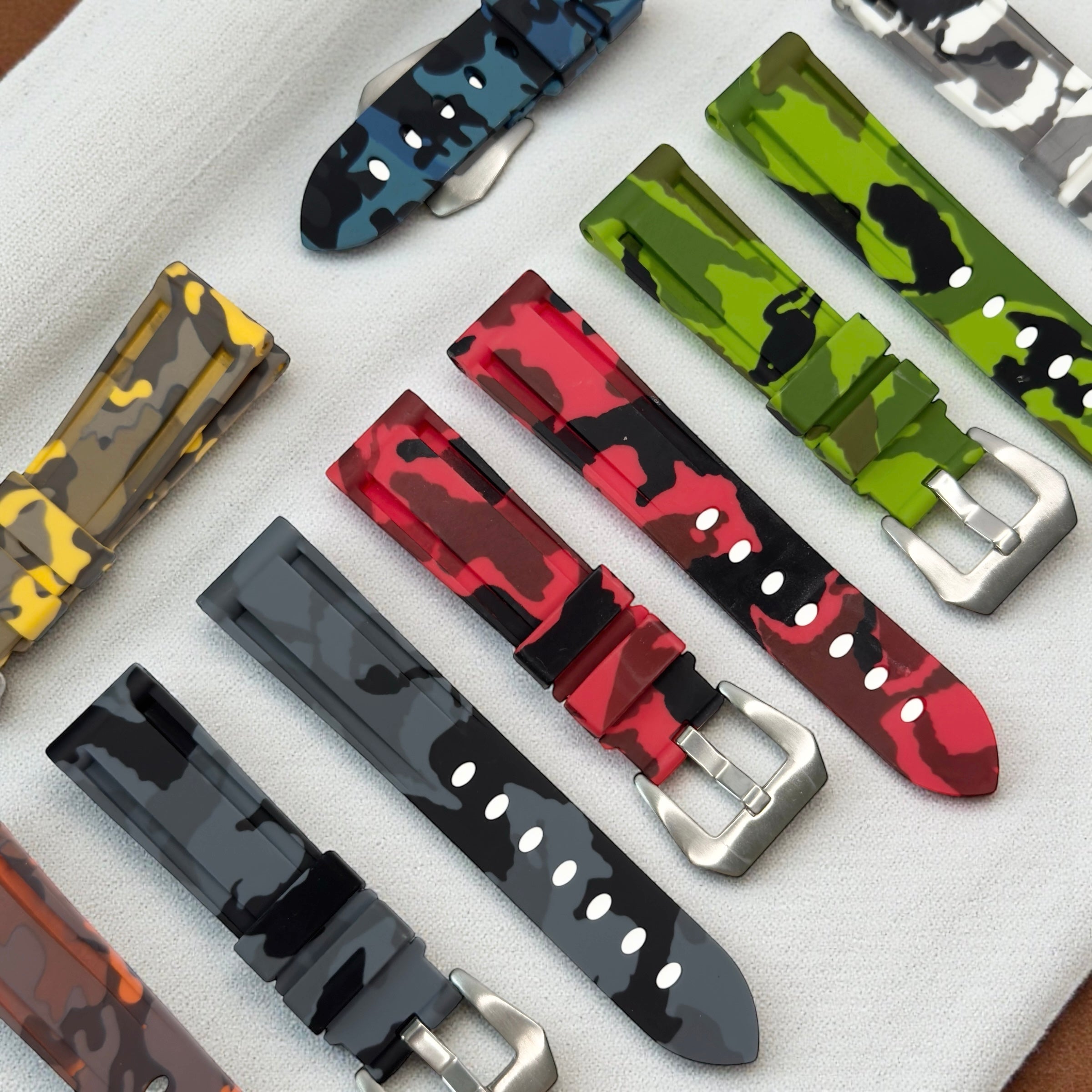 Our Camouflaged Rubber Watch Straps bring military-inspired aesthetics into the modern era...