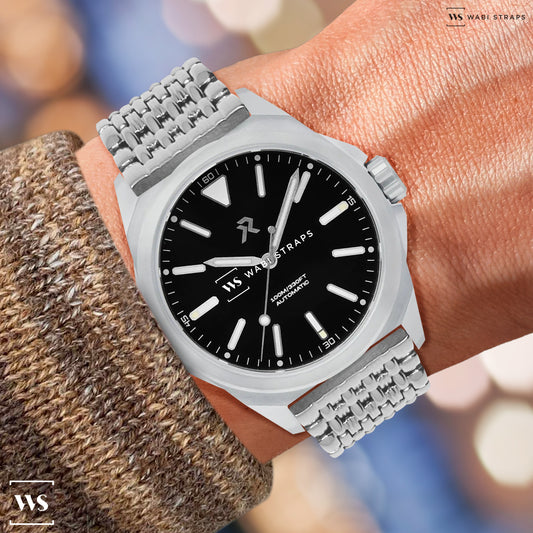 Silver & Black H-link Flat Butterfly Metal Bracelet