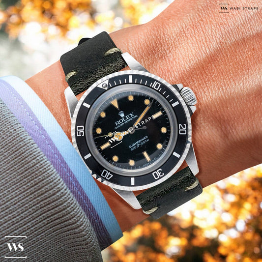 Black Two Stitch Waxed Vintage Leather Strap