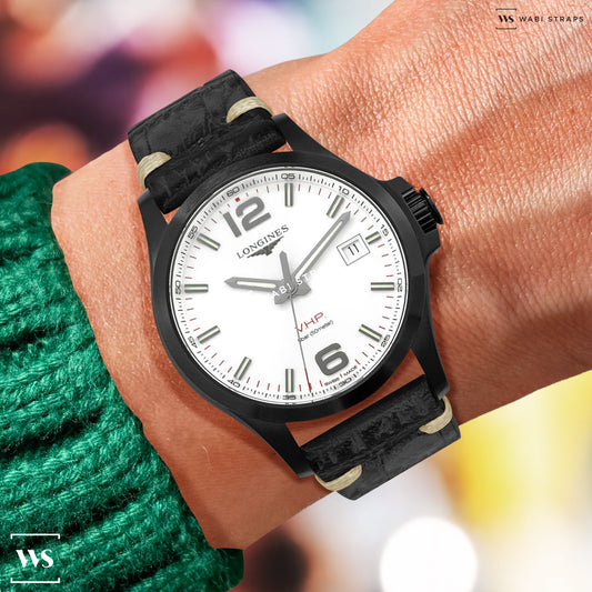 Black Croc Grain Embossed Leather Strap