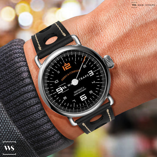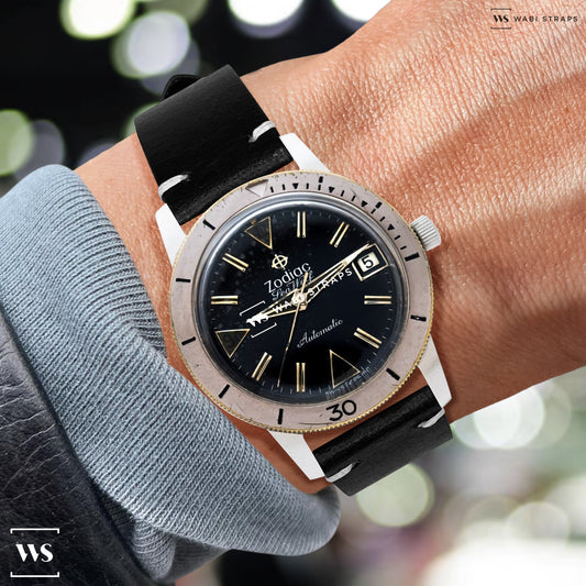 Black Two Stitch Waxed Vintage Leather Strap