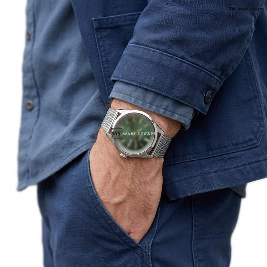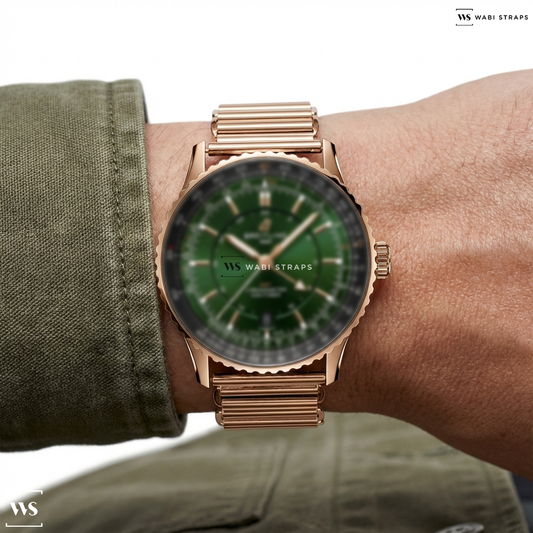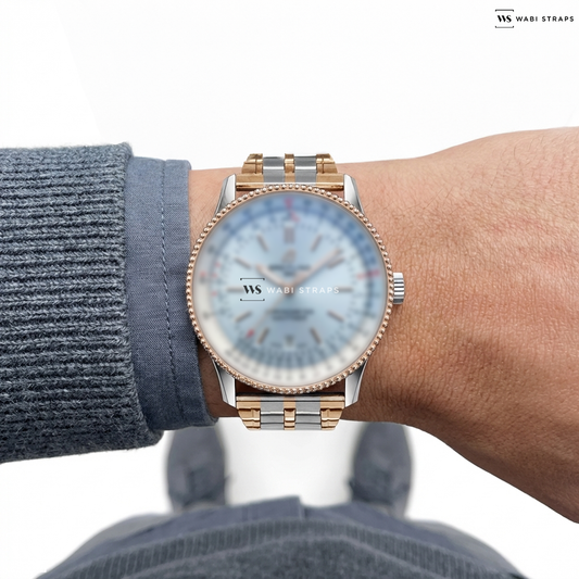 Rose Gold & Silver Folded Flatlink Railroad Metal Bracelet