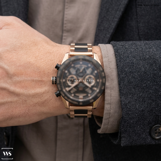 Rose Gold & Black H-link Flat Butterfly Metal Bracelet