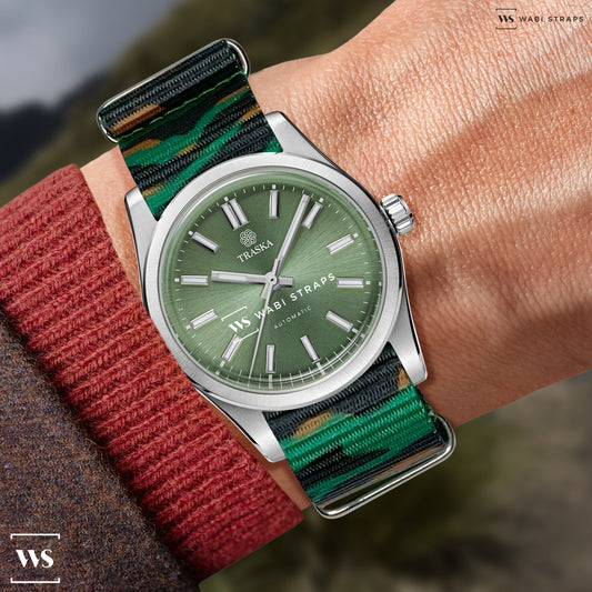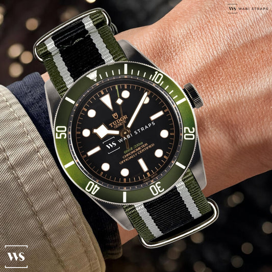 Green, White & Black Retro British Military Watch Strap