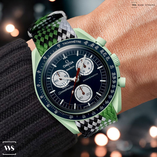Green, Black & White Braided Perlon Strap