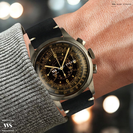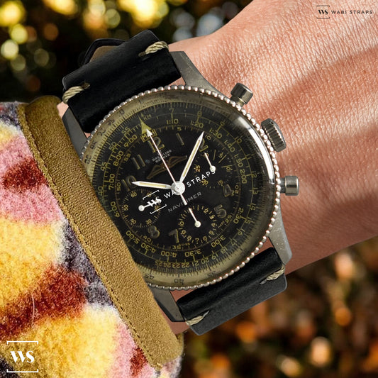 Black Vintage Leather 5-Ring Hardware NavSpec British Military Strap