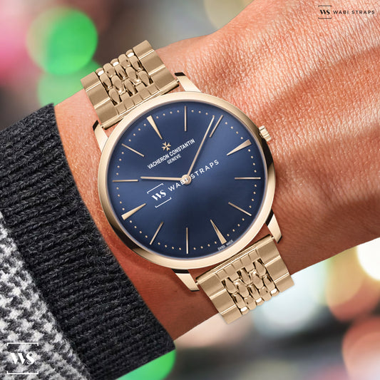 Rose Gold Folded Flatlink Railroad Metal Bracelet