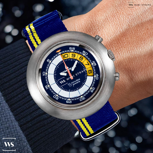 Yellow Stripes on Blue Ducati Special British Military Watch Strap