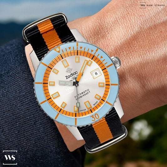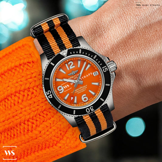 Black & Orange Striped 5-Ring Hardware NavSpec British Military Strap