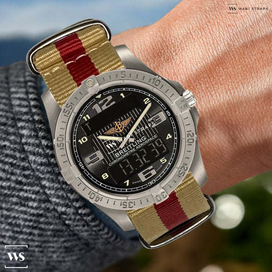 Beige & Red Classic British Military Watch Strap