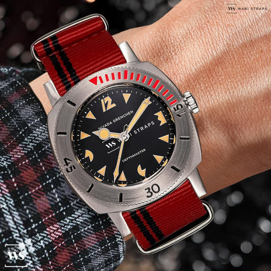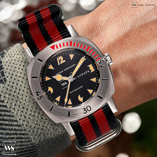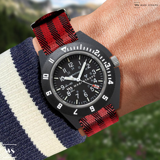 Black Stripes on Red Ducati Special British Military Watch Strap