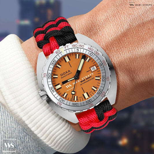Black Red Paracord Rope Velcro Watch Strap