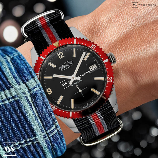 Black, Grey & Red Regimental British Military Watch Strap
