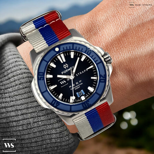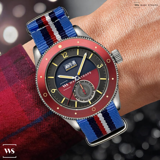 Sky Blue, Navy & Red/White Original British Military Watch Strap