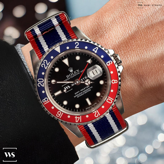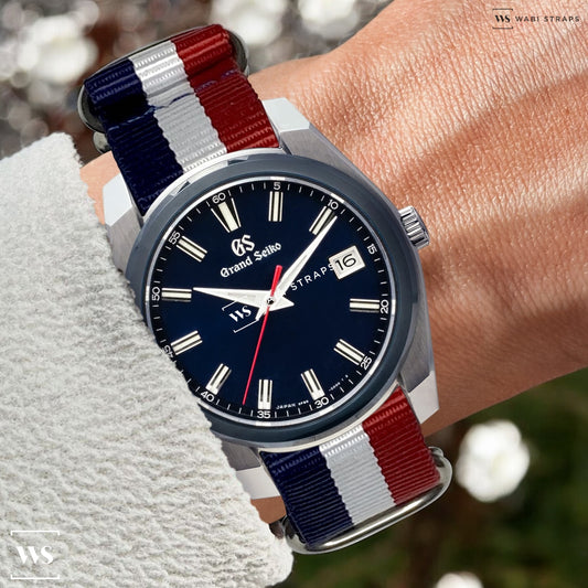 Red, White & Blue Striped 5-Ring Hardware NavSpec British Military Strap
