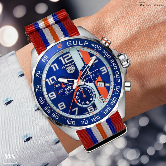Red, Blue, White & Orange Racing British Military Watch Strap