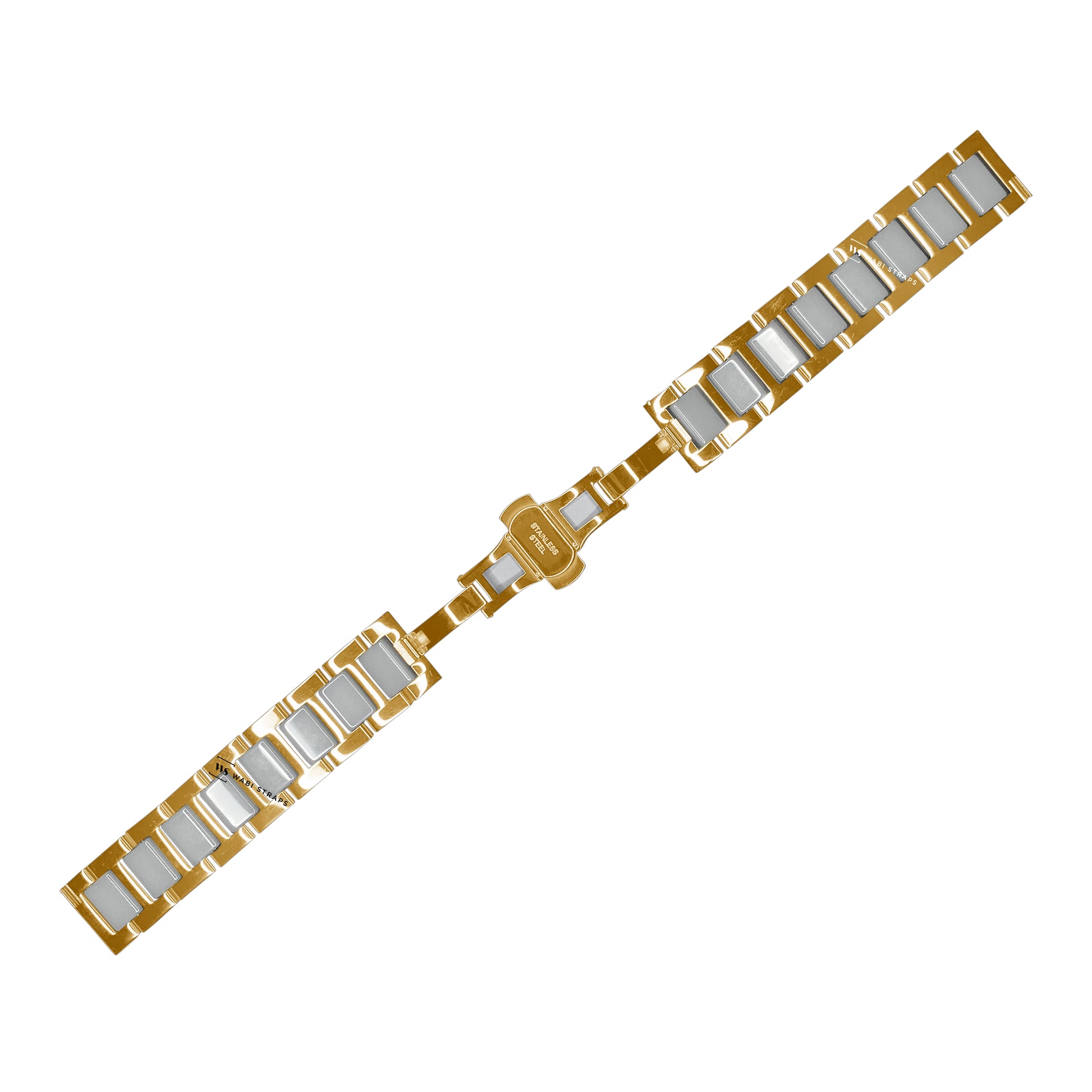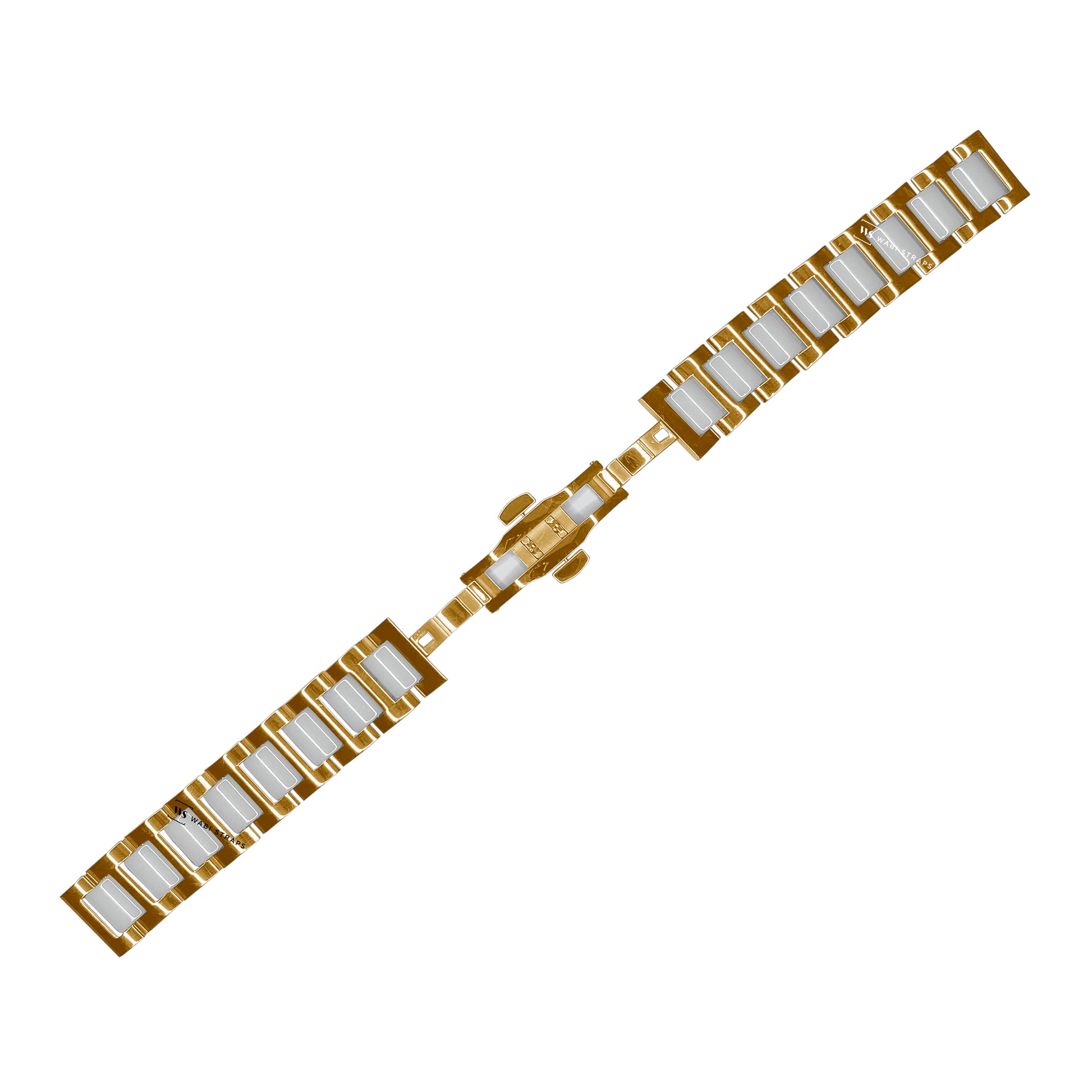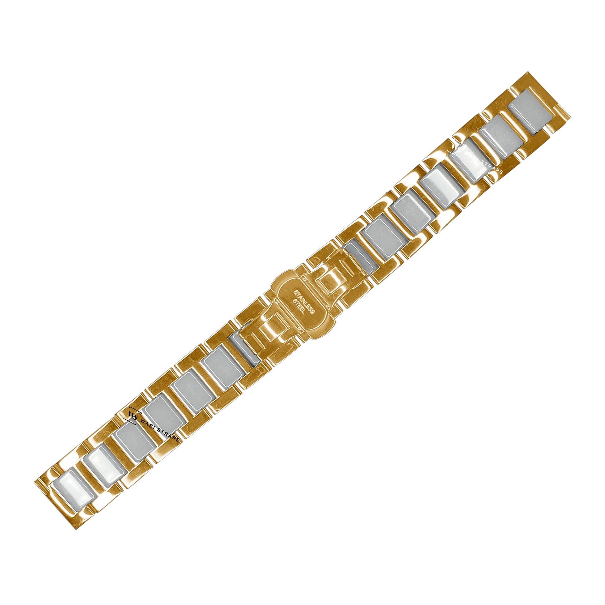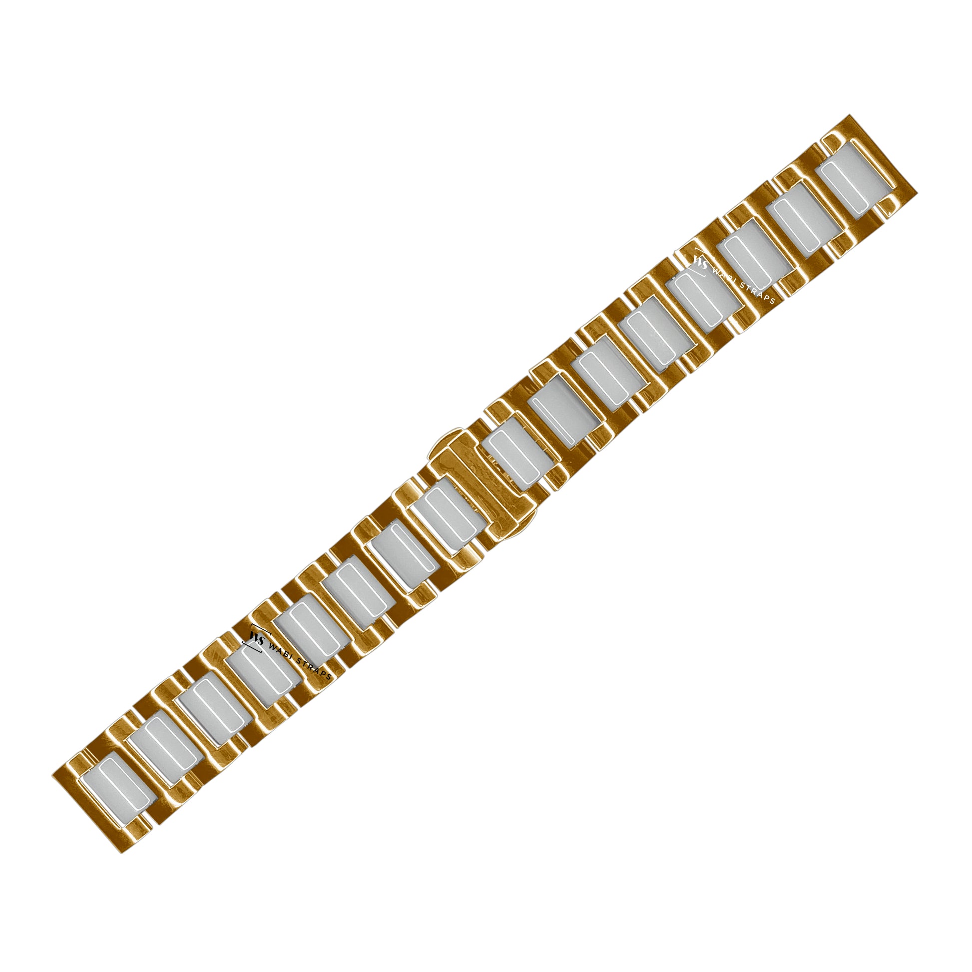 Elevate your watch game with the Gold & White H-link Flat Butterfly Metal Bracelet, a perfect blend of modern elegance and minimalist design. Featuring sleek gold H-links interspersed with glossy white segments, this bracelet offers a striking contrast that catches the eye. Its smooth, polished finish and seamless flat design make it an ideal choice for both formal occasions and casual outings, effortlessly adding a touch of sophistication to any outfit. The butterfly clasp ensures a secure and comfortable fit, maintaining a streamlined look on the wrist. Pair this stylish bracelet with a classic watch face for a refined look or a modern timepiece to make a bold fashion statement. Whether you're in business attire or a casual ensemble, the Gold & White H-link Bracelet is versatile enough to complement any style with ease.