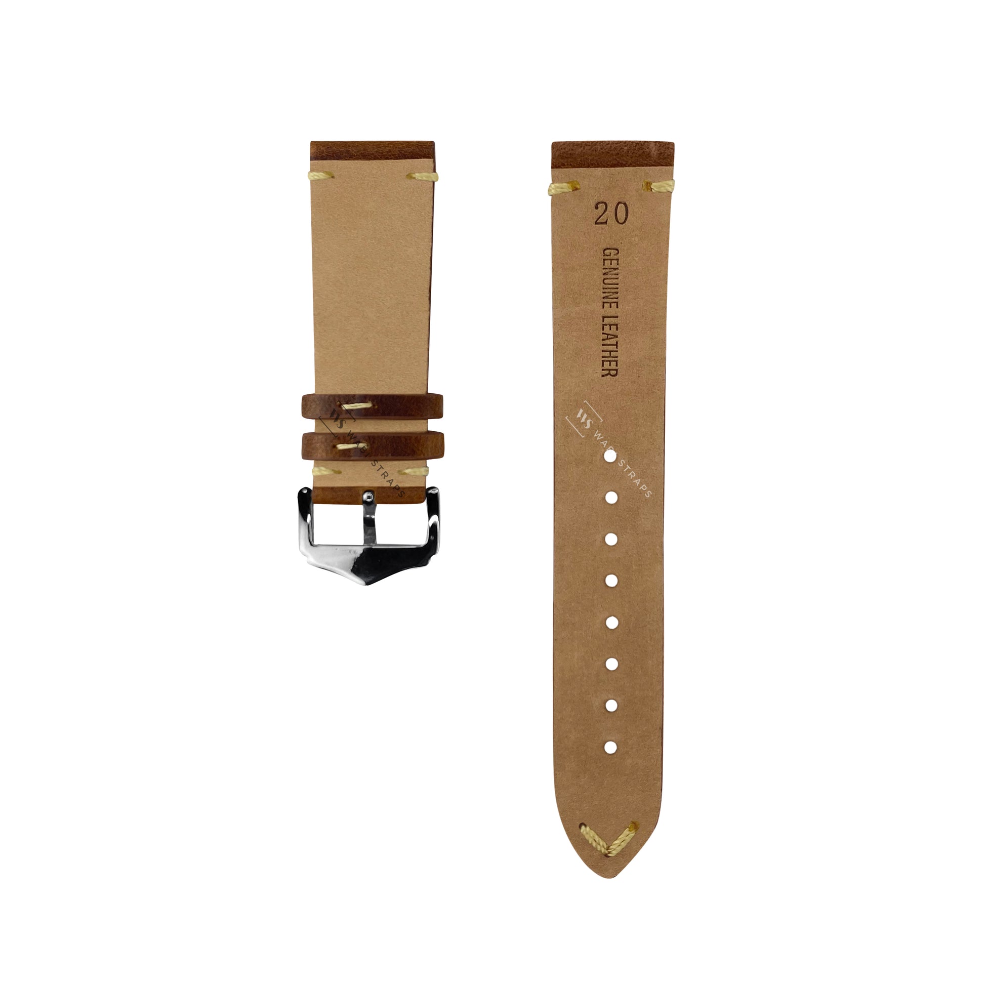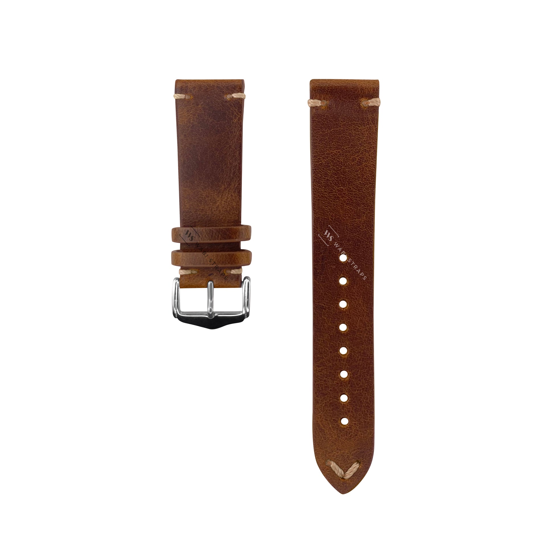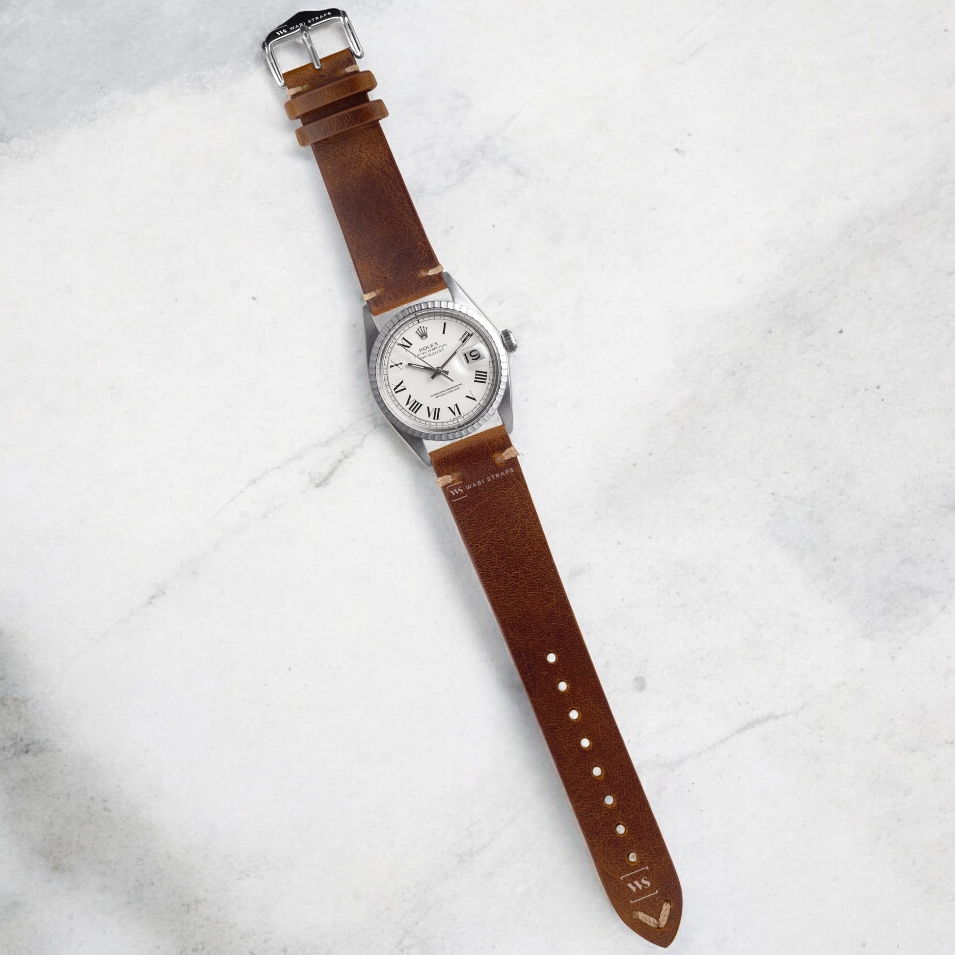 Our tan distressed leather strap is classic Wabi Sabi, showing that beauty can be found in imperfection. While your leather strap may be distressed, you can be sure you never will be because you will always be on point when it comes to style, especially with a beautiful watch strapped to your wrist on this incredible strap. Taking design cues from classic watch strap manufactures, we have implemented the classic design of having the stitching at the lugs as well as the tongue end of the strap. These also provide for added durability. The leather has been specially treated to give it a distressed and crumpled look which we love oh so much.
